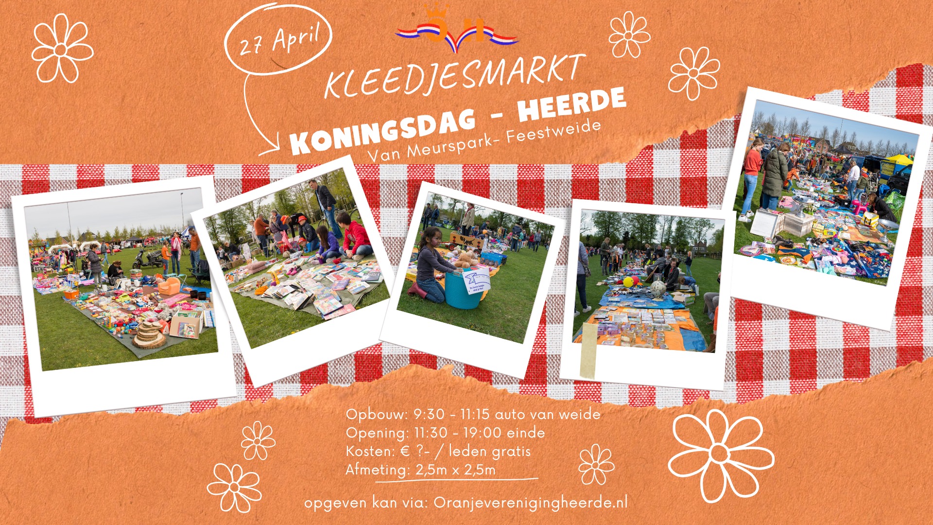 Wanneer er vragen zijn kunnen deze gesteld worden door het contactformulier in te vullen of contact op te nemen via kleedjesmarkt@oranjeverenigingheerde.nl